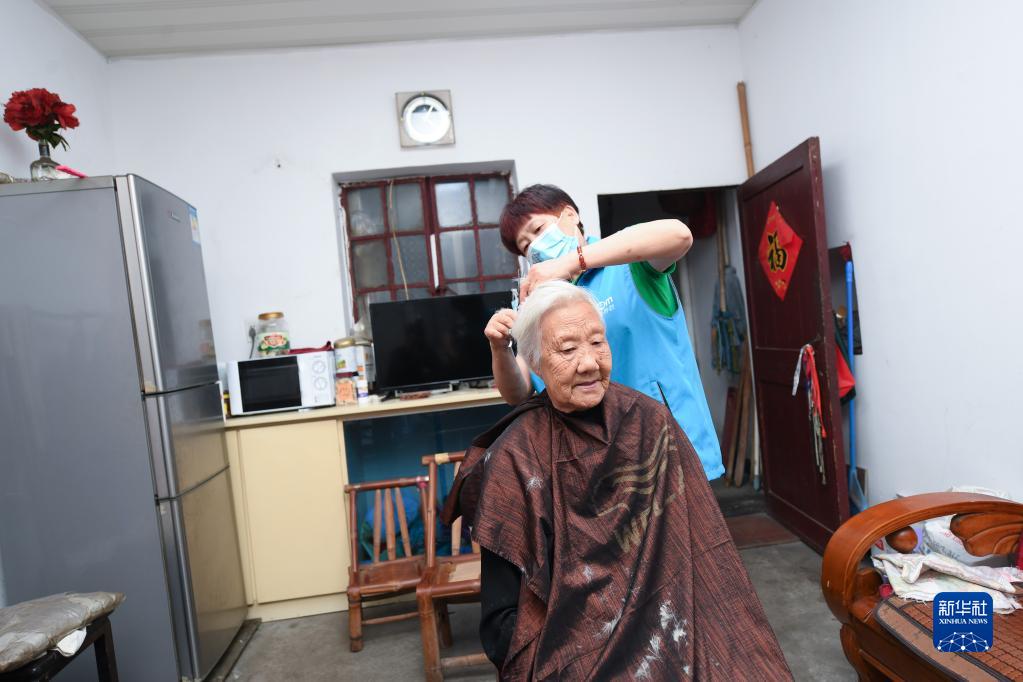 5月30日,志愿者上门给上强社区的老年人免费理发。