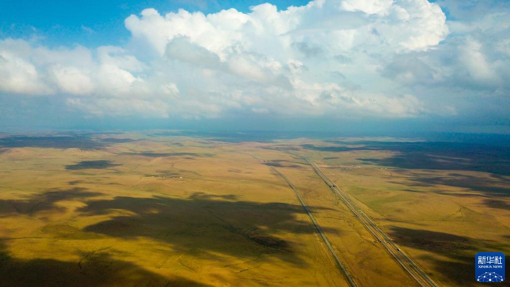 这是5月30日拍摄的内蒙古锡林郭勒盟苏尼特右旗境内的草原风光(无人机照片)。