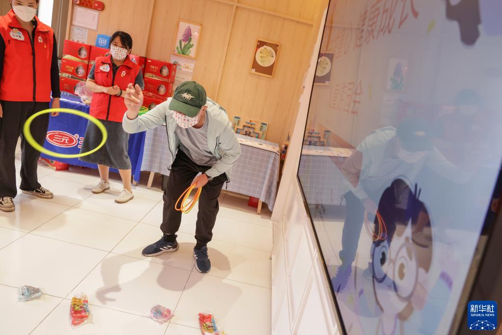 5月30日,一个小朋友在游园会上玩套圈。