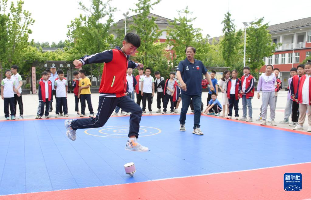 5月30日,河南省济源市梨林镇中心小学的学生参加校园足螺比赛。