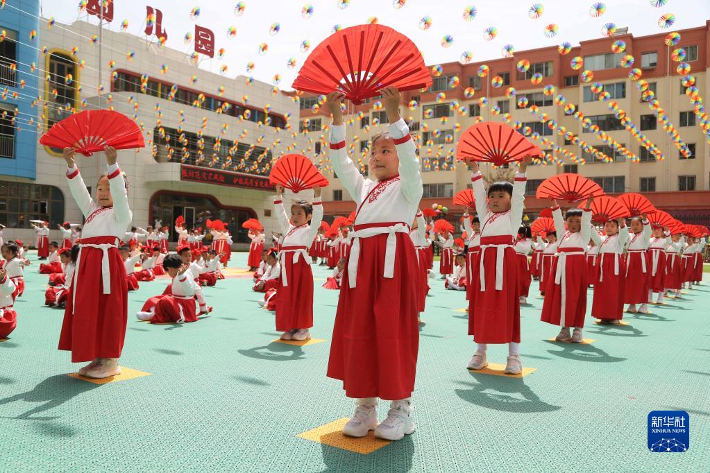 5月30日,甘肃省定西市安定区中华路幼儿园的小朋友在表演节目。