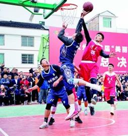 在贵州省首届“美丽乡村”篮球联赛总决赛中,球员在激烈争抢。资料图片