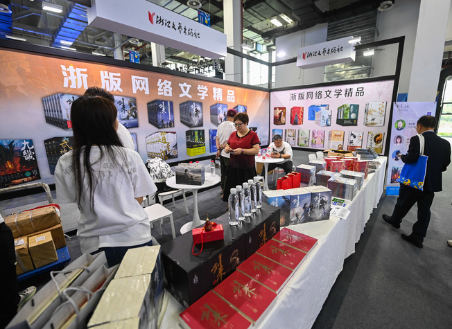 5月27日,人们在网络文学产业博览会现场了解网络文学及衍生产品。新华社记者 徐昱 摄