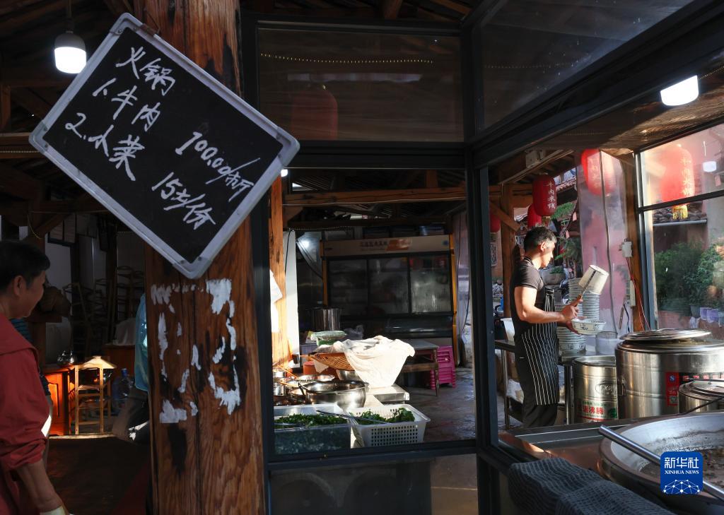 5月31日,普者黑景区仙人洞村一家餐馆的工作人员在准备早餐。
