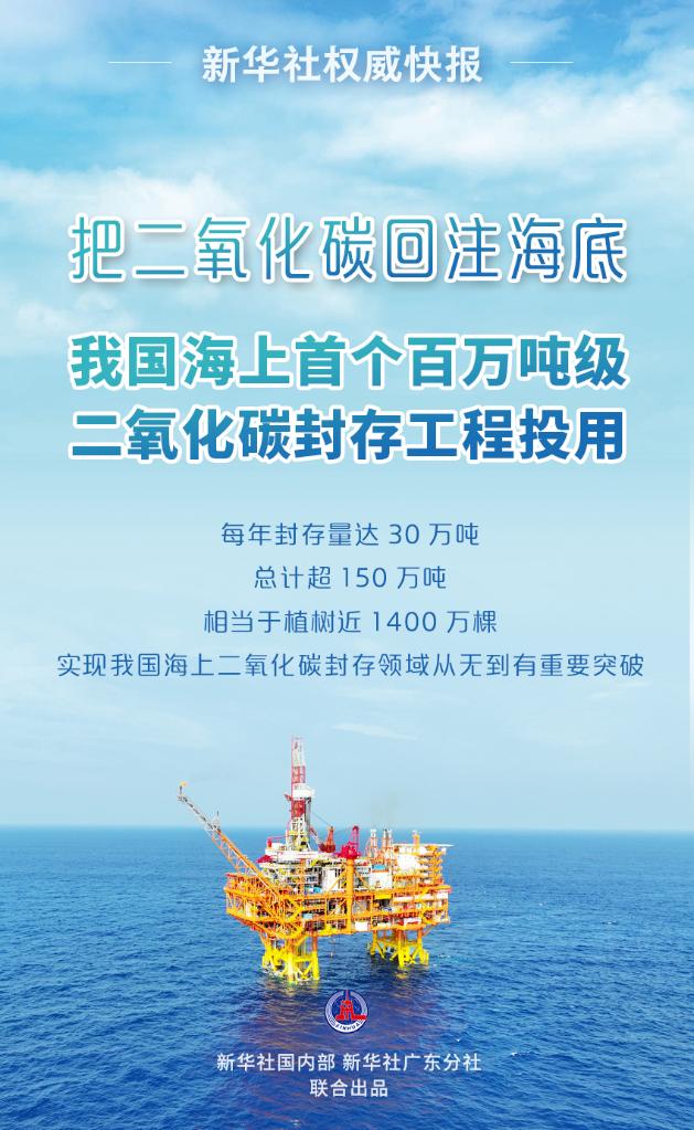 实现了我国海上二氧化碳封存领域从无到有的重要突破