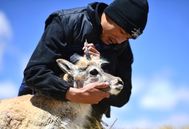 没有了母亲的保护,很多弱小无助的小藏羚羊在卓乃湖畔艰难生存。“巡山过程中,我们发现‘落单’的小藏羚羊,都会抱回保护站。”巡山队员们充当起抚育小生命的“奶爸”角色。