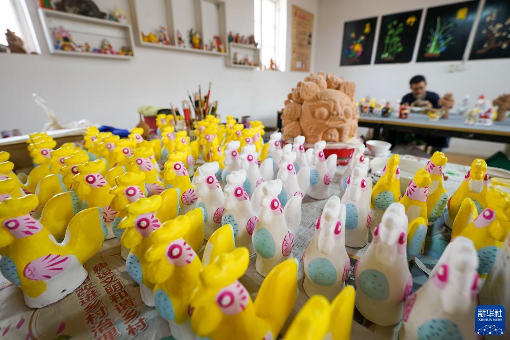 6月1日,泥塑艺人在河北省玉田县亮甲店镇的一家泥塑工作室内制作泥塑。