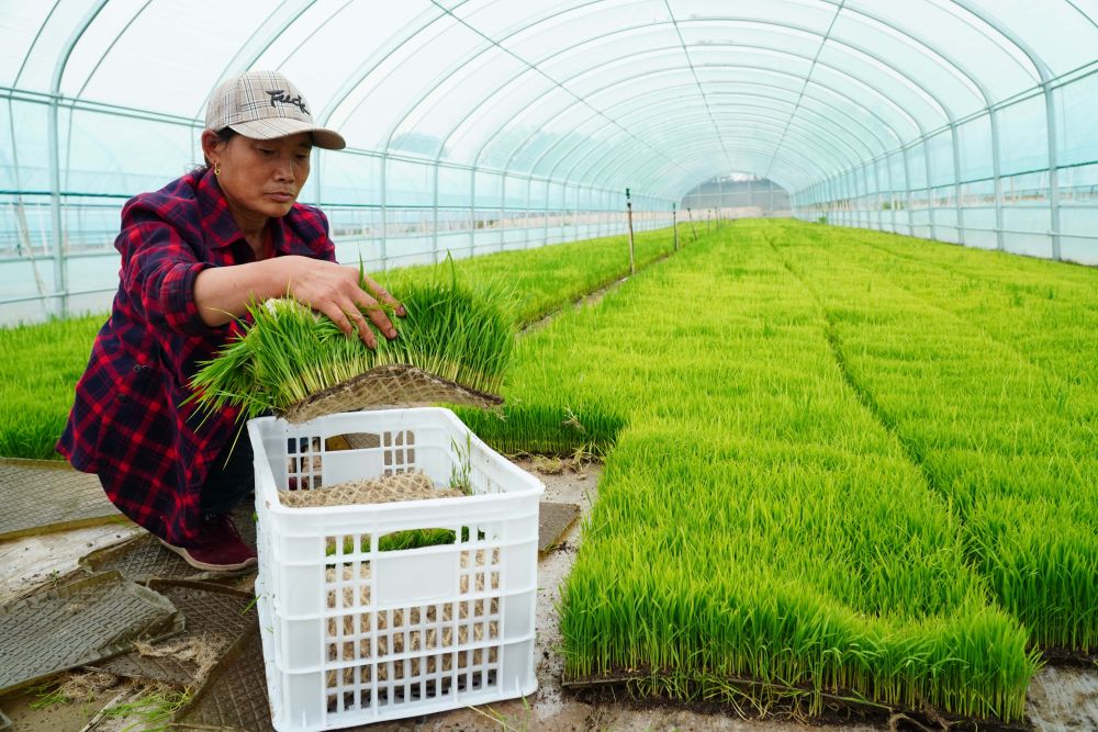 5月20日,山东省东营市垦利区黄河口镇,农户在培育海水稻秧苗。新华社记者 徐速绘 摄
