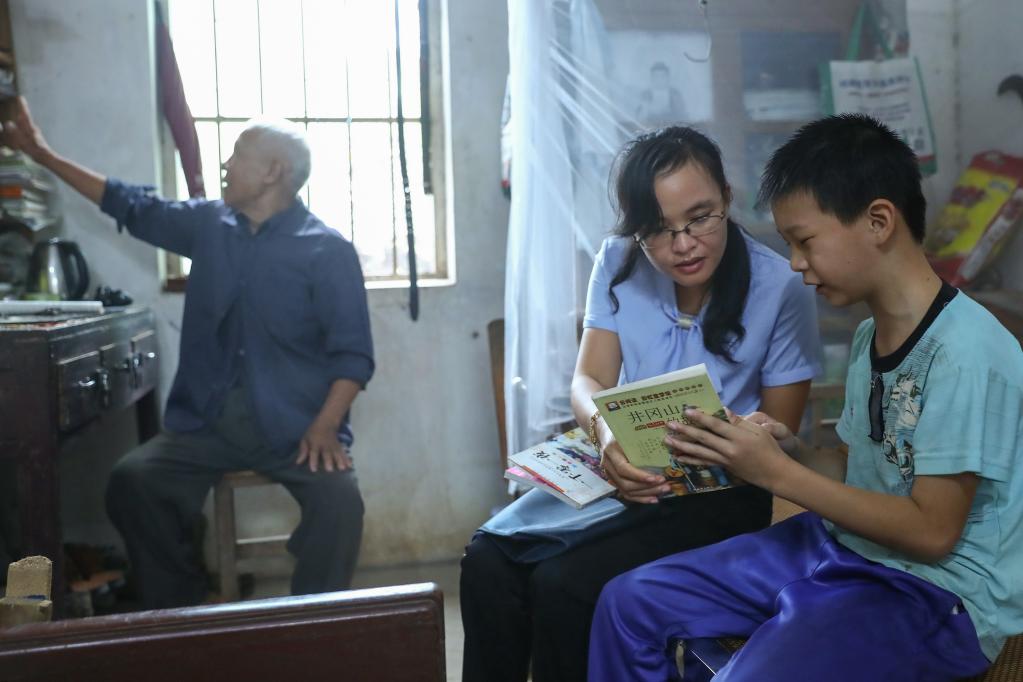 2020年9月20日,广西灵山县佛子镇元眼村,儿童主任黄飞凤在进行家访。 新华社记者 张玉薇 摄