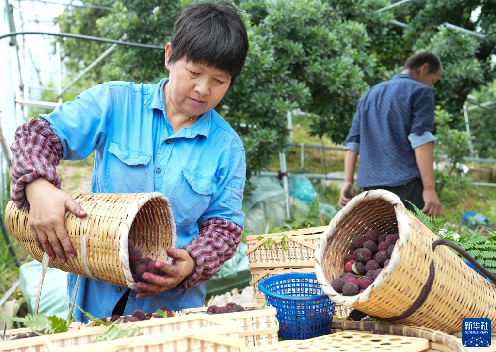 6月1日,在余姚市三七市镇石步村,果农在大棚内包装杨梅。