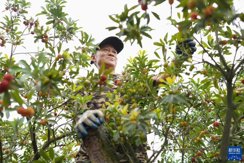 6月1日,在余姚市三七市镇石步村,果农对露地杨梅进行疏果,以提高熟果品质。