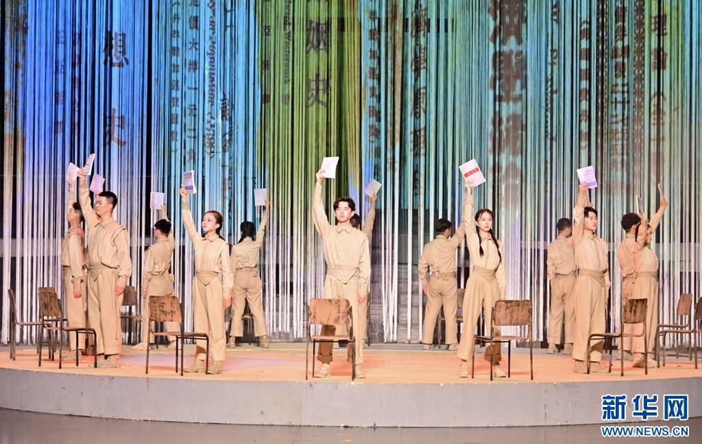 5月31日晚,厦门大学原创话剧《遥望海天月》在福建大剧院演出。 新华网发 (庄华摄)