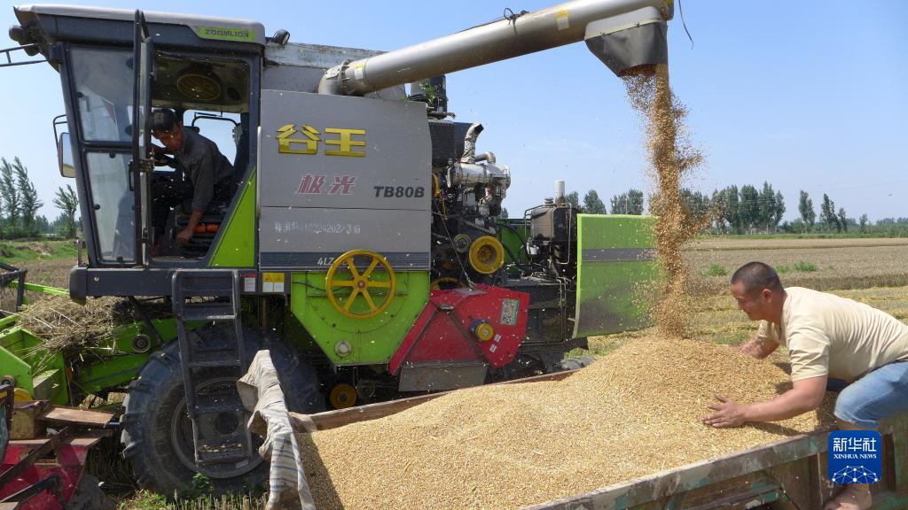 近日,河南多地昼夜不停抢收小麦,确保颗粒归仓。
