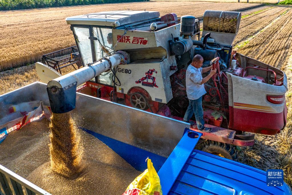 近日,河南多地昼夜不停抢收小麦,确保颗粒归仓。