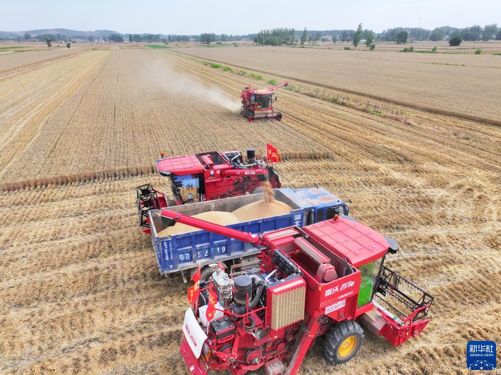 近日,河南多地昼夜不停抢收小麦,确保颗粒归仓。