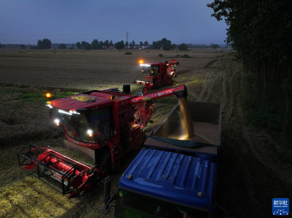 近日,河南多地昼夜不停抢收小麦,确保颗粒归仓。