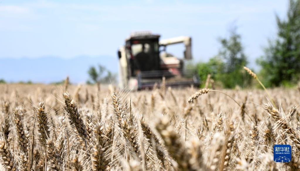 6月1日,在河南省济源市轵城镇洪沟村,农民驾驶联合收割机在抢收小麦。