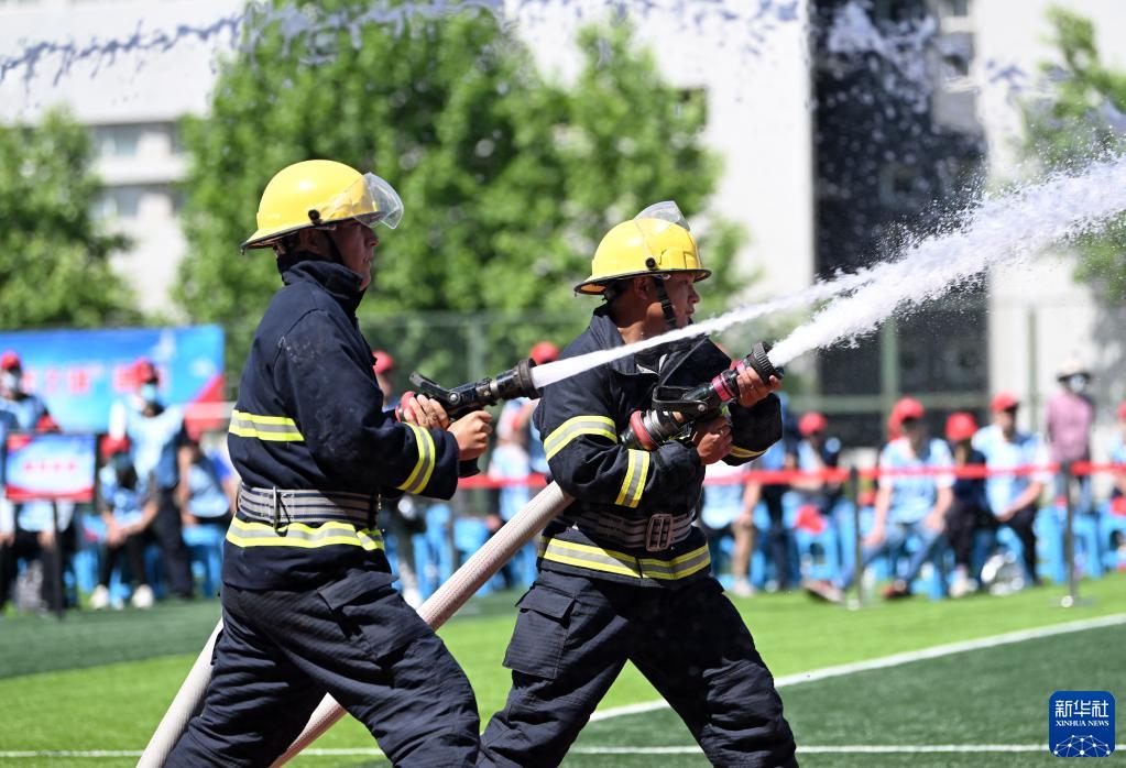 6月2日,微型消防站代表参加水枪打靶消防业务技能比武。