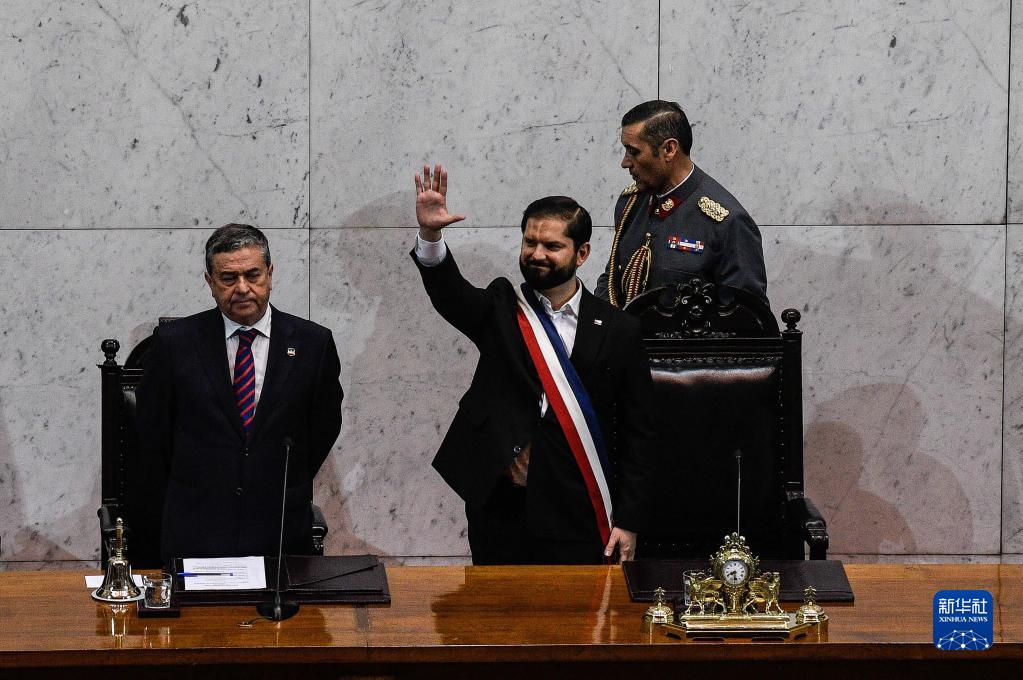 6月1日,智利总统博里奇在瓦尔帕莱索的国会大厦发表国情咨文演讲。新华社发(豪尔赫·比列加斯摄)