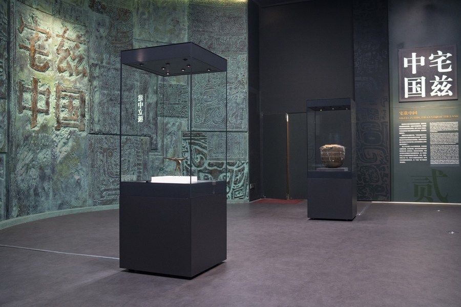 习近平走进院内的中国考古博物馆,先后参观文明起源和宅兹中国专题展,了解新石器时代和夏商周时期重大考古发现,并不时询问相关研究工作进展。
