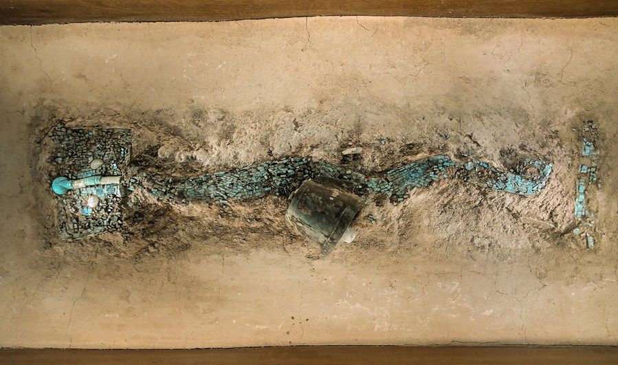 这是中国考古博物馆展出的绿松石龙形器。
