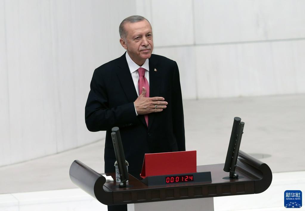 6月3日,土耳其总统埃尔多安在首都安卡拉宣誓就职。新华社发(穆斯塔法·卡亚摄)