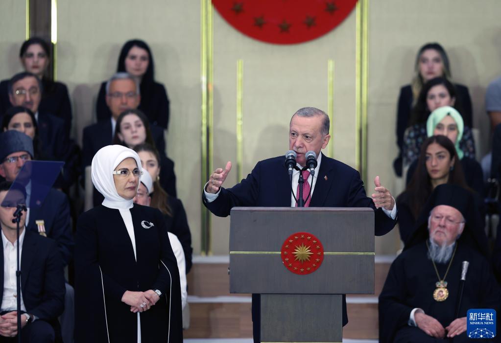 6月3日,土耳其总统埃尔多安在首都安卡拉出席就职仪式。新华社发(穆斯塔法·卡亚摄)
