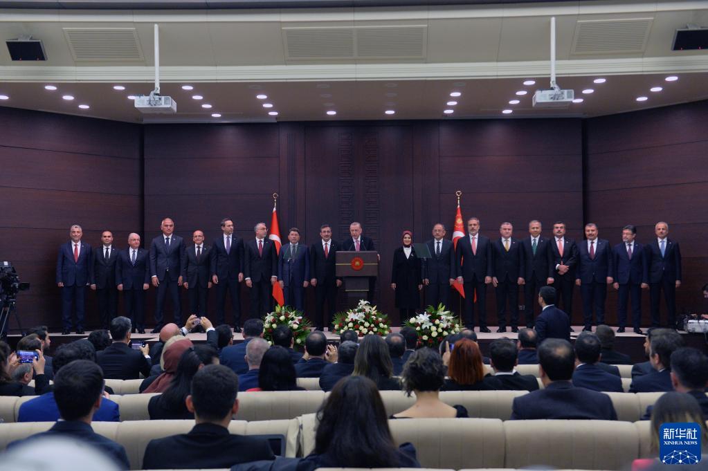 新华社安卡拉6月3日电(记者熊思浩)连任成功的土耳其总统埃尔多安3日在首都安卡拉宣誓就职,并宣布新一届内阁成员名单。