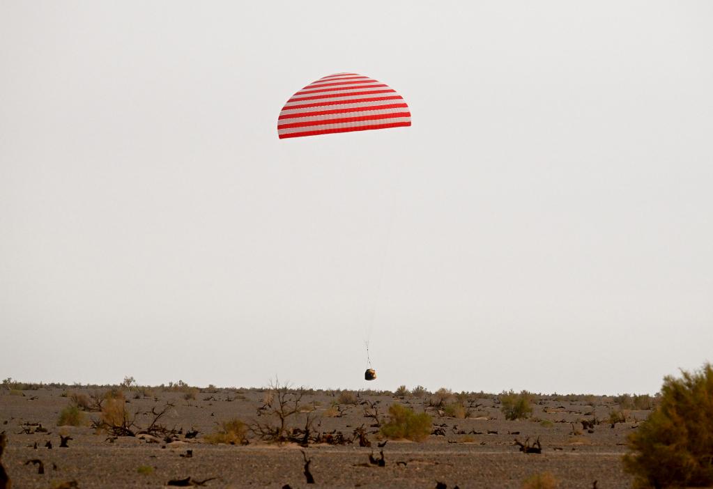 6月4日,神舟十五号载人飞船返回舱在东风着陆场成功着陆。新华社记者 连振 摄