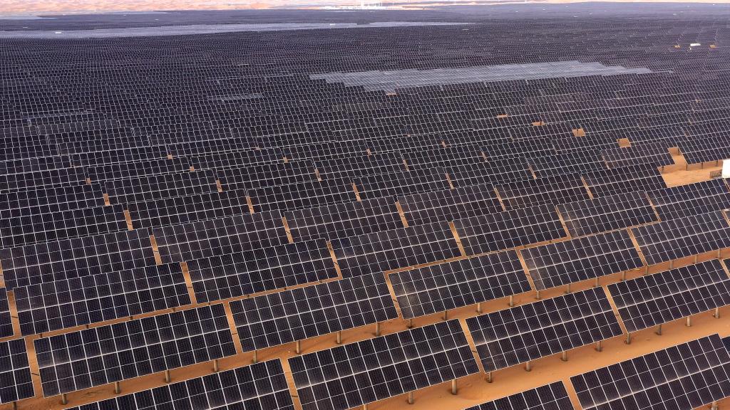 走进地处腾格里沙漠南缘的中卫市沙漠光伏产业园,6万余亩的沙海上方,鱼鳞片般的光伏板沐浴在阳光下。十多年来,这里的人们在不断提高资源综合利用效率的同时,努力实现光伏发电与生态修复协同发展。目前,这里已进驻十多家企业,建成光伏电站容量超千兆瓦,年可新增绿电发电量17亿度。