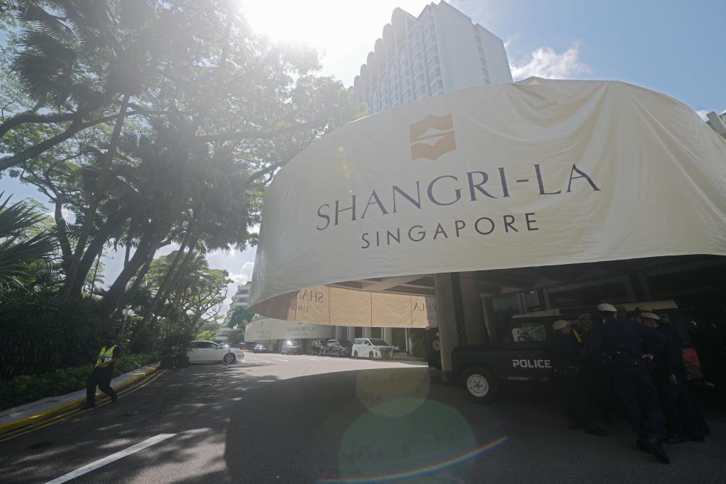 6月2日,警察在新加坡香格里拉酒店外执勤。第20届香格里拉对话会定于2日至4日在新加坡举行。新华社发(邓智炜 摄)