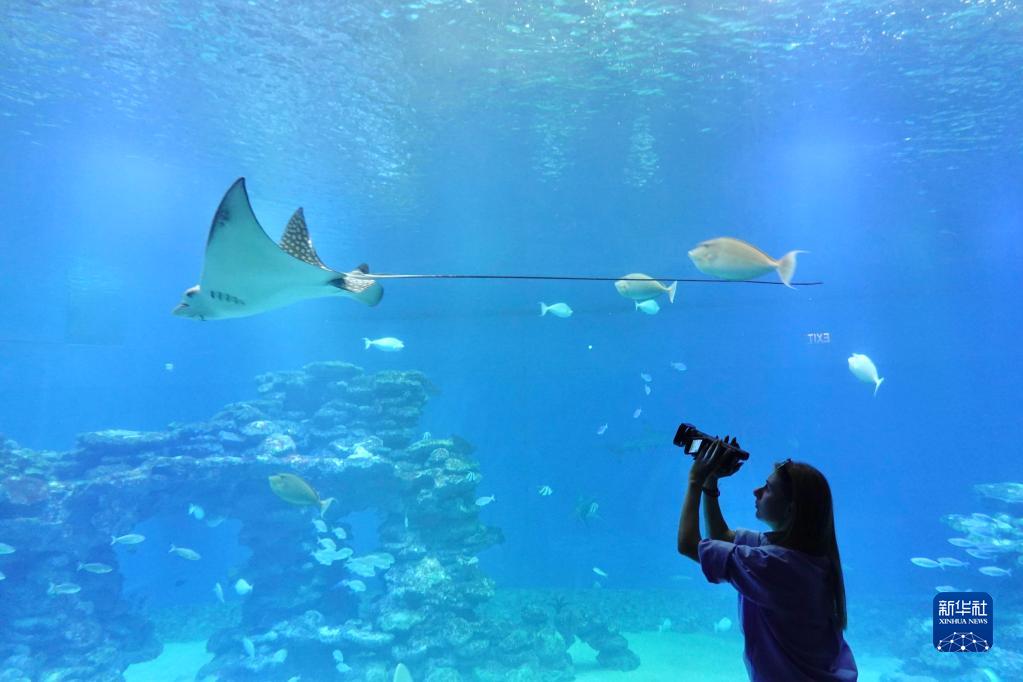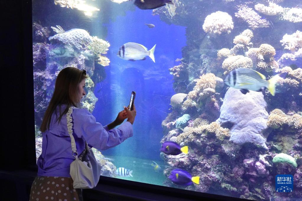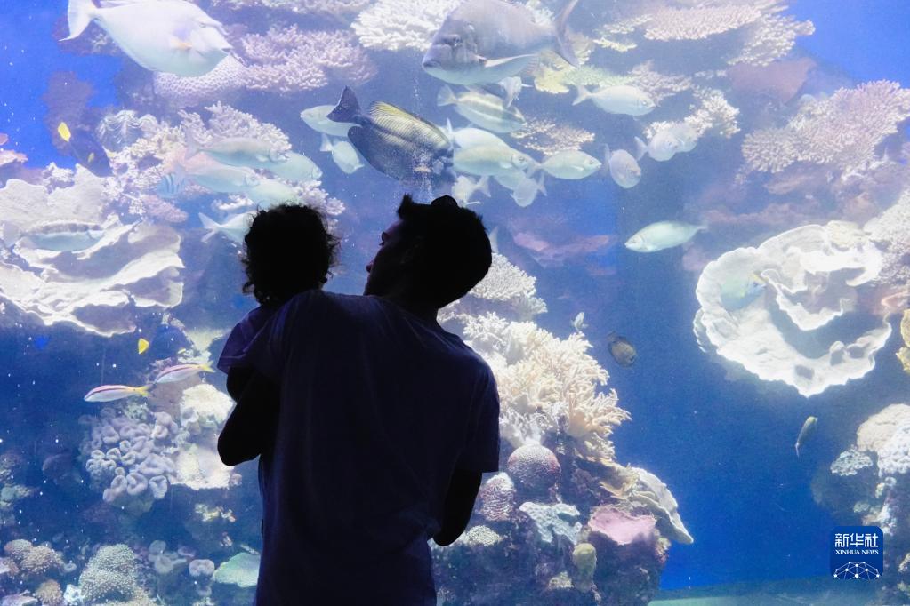 6月1日,人们在以色列红海海滨城市埃拉特的水下观测公园参观。新华社记者 王卓伦 摄