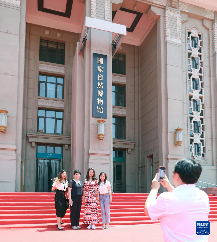 6月5日,人们在国家自然博物馆前留影。新华社发