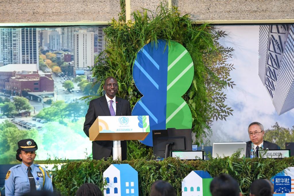 6月5日,肯尼亚总统鲁托在首都内罗毕举行的第二届联合国人居大会开幕式上讲话。新华社记者李亚辉摄