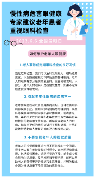 6月6日是全国爱眼日。随着我国老龄化程度不断加深,老年人的眼健康正成为人们日益关注的问题。新华社记者采访了中南大学湘雅医院眼科中心副主任闵晓珊教授,我们一起来听听专家对于维护老年人的眼健康有哪些建议。