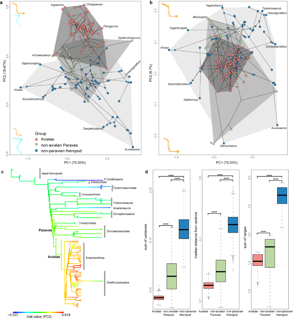 包括鸟类在内的中生代兽脚类恐龙肢骨形态演化空间和多样性的比较。(中科院古脊椎所供图)