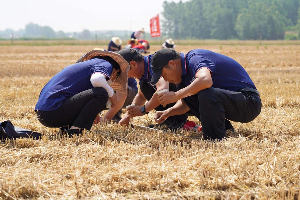 6月6日,工作人员在现场测算减损率。(新华社记者 朱峥摄)