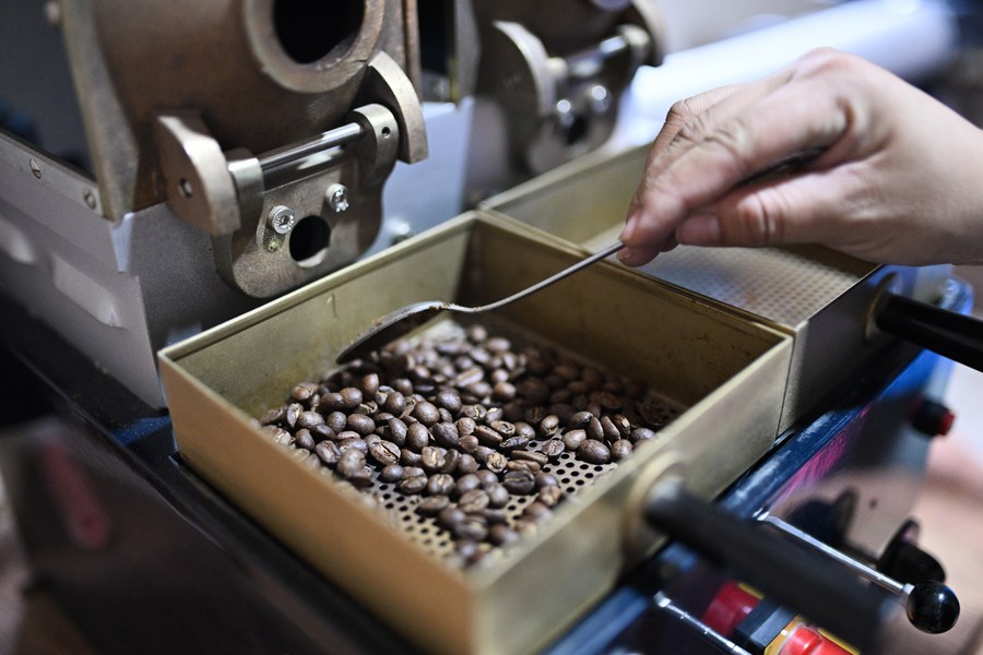 5月6日,在洪都拉斯马尔卡拉的一家咖啡工厂,工人查看经过烘焙的咖啡豆。洪都拉斯的自然条件非常适合咖啡种植,是中美洲主要咖啡出口国之一。新华社记者辛悦卫摄