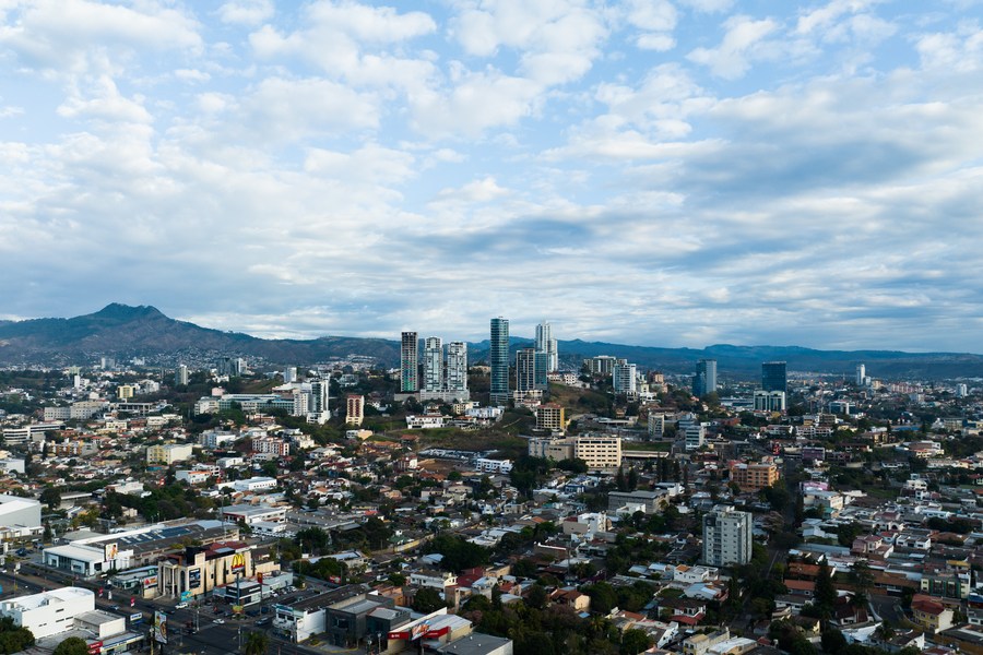 这是3月26日拍摄的洪都拉斯首都特古西加尔巴城市风貌(无人机照片)。新华社记者辛悦卫摄
