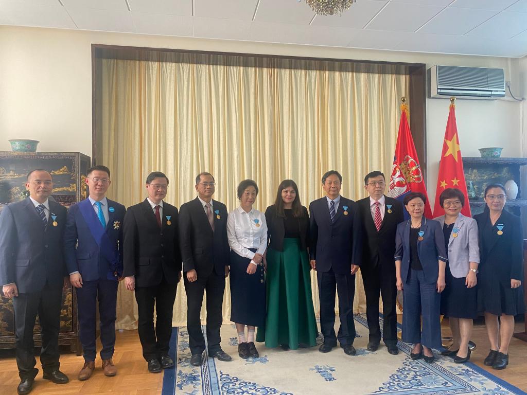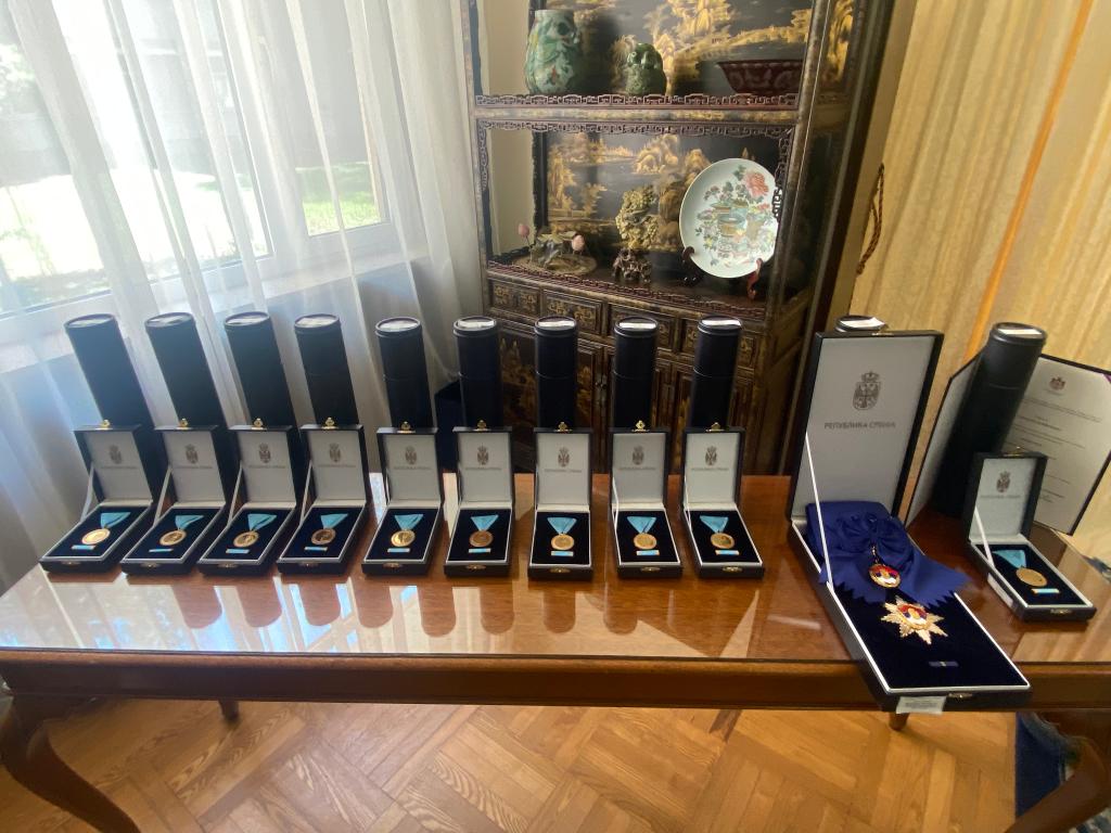 6月6日,塞尔维亚驻华大使馆举行塞尔维亚国家勋章颁授仪式,向中国赴塞尔维亚抗疫医疗专家组成员颁发“金质功勋奖章”,以表彰他们为支持塞尔维亚抗击新冠疫情所作的贡献。