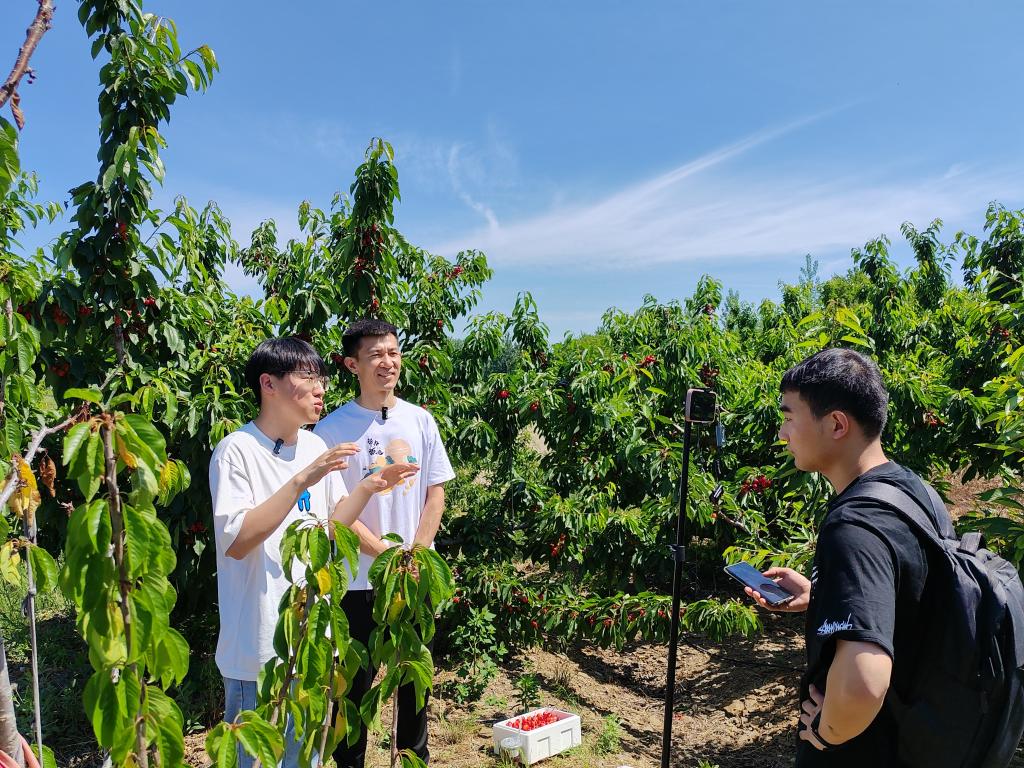 近年来,合作社还积极拓展电商、直播带货等销售渠道。记者爬上南庄村的东山,在挂满果实的樱桃树间走访时,恰逢烟台当地一直播团队给潍坊电视台做直播带货节目。两名年轻小伙背靠樱桃树,向直播镜头前的观众介绍目前果实的状况。