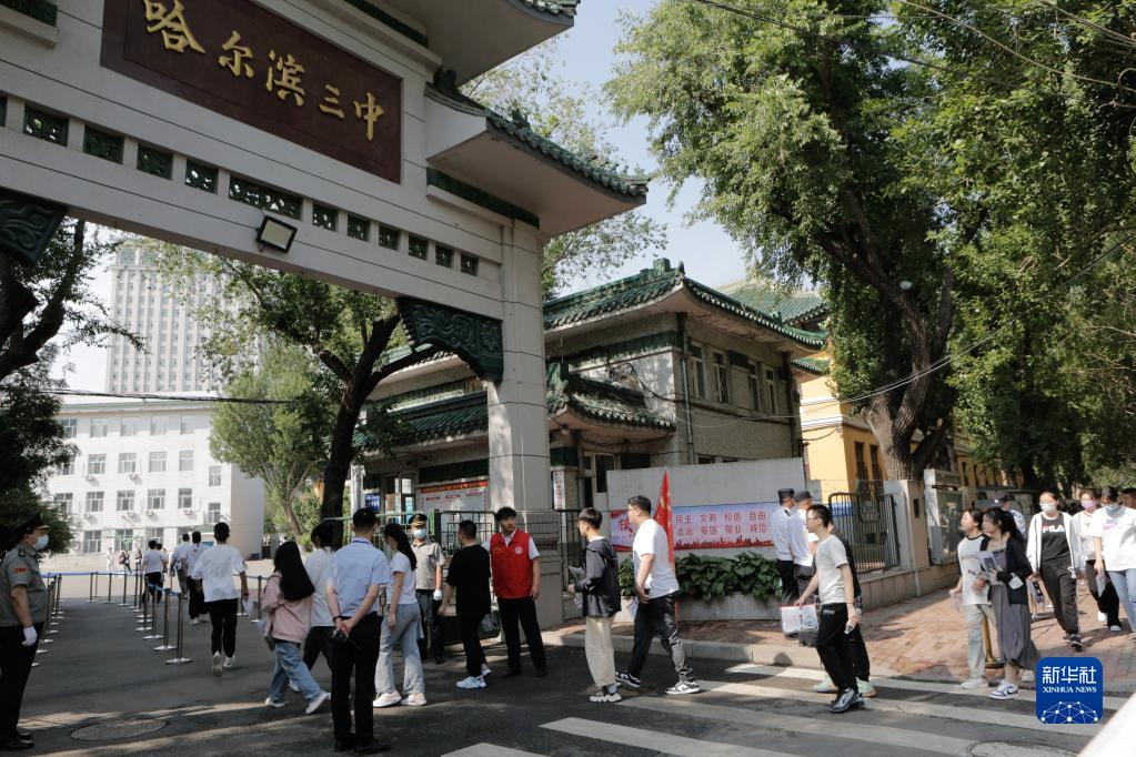 6月7日,在哈尔滨市第三中学考点,考生们有序进入考场。