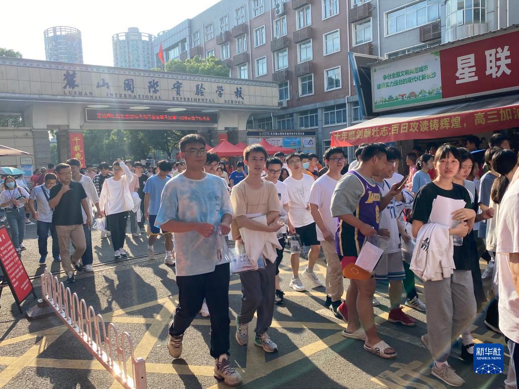 6月7日,在长沙市麓山国际实验学校考点,考生下午结束考试后走出考场。