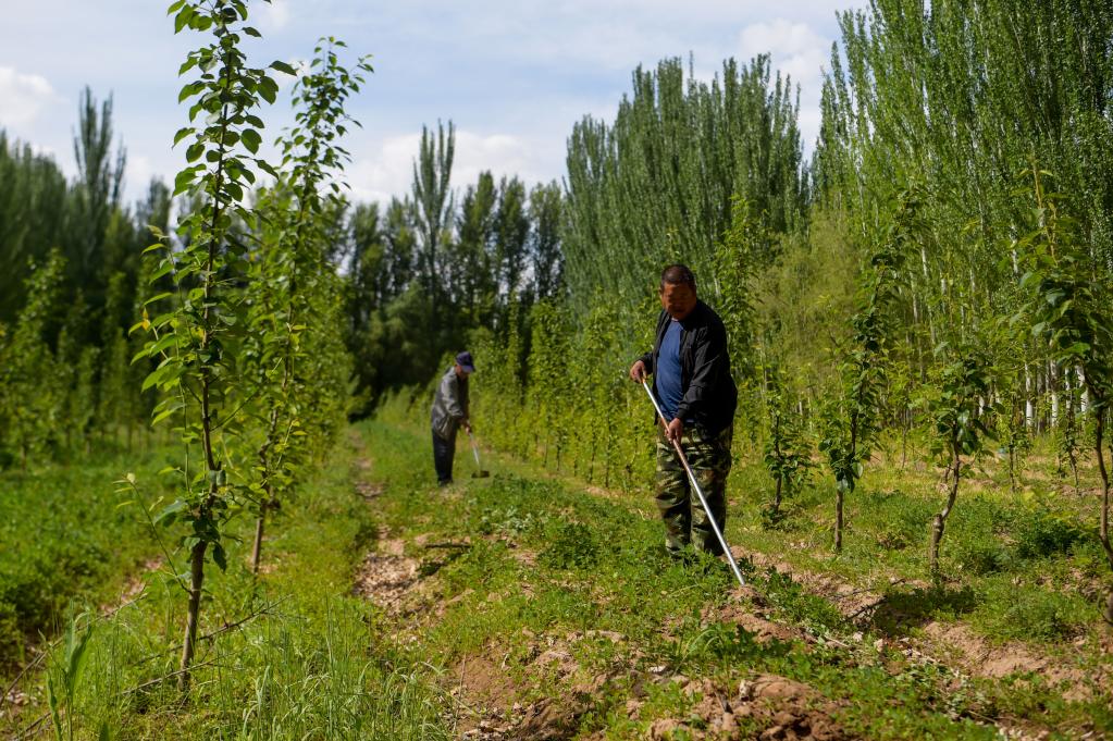 6月5日,临河区国营新华林场工人在管护林木。新华社记者 李志鹏 摄