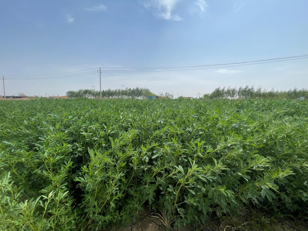 初夏时节,宁夏平罗县盐碱地里种植的苜蓿草长势旺盛。新华社记者 苏醒 摄