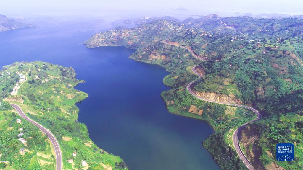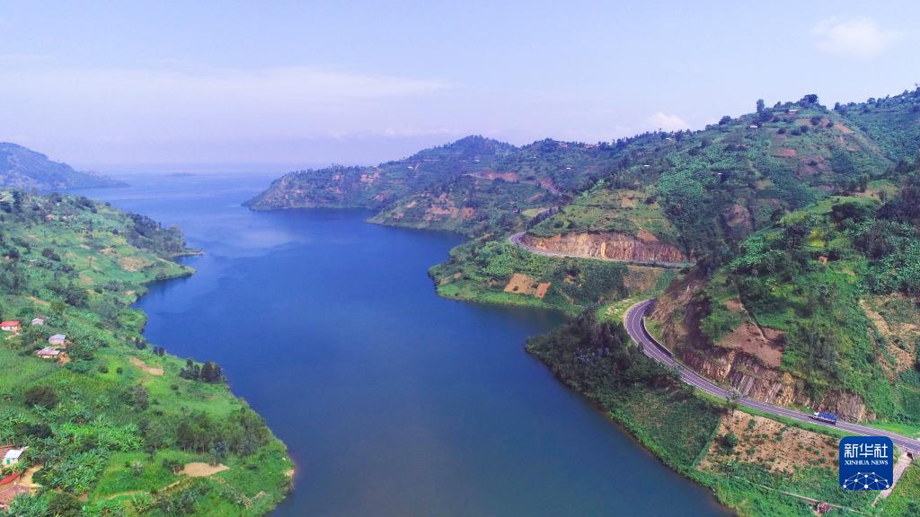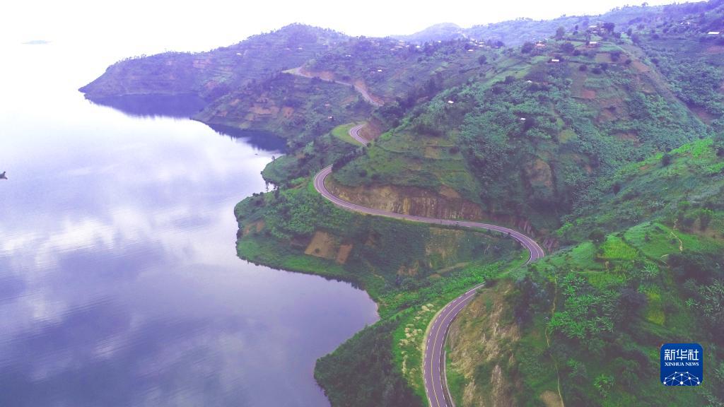 新华社记者日前驱车从邻近卢旺达基伍湖的西方省基布耶市南下,只见一条平坦的双向沥青混凝土路,盘旋于山丘之间,恰似一条蜿蜒的美丽丝带,将湖光山色与城镇连接在一起。