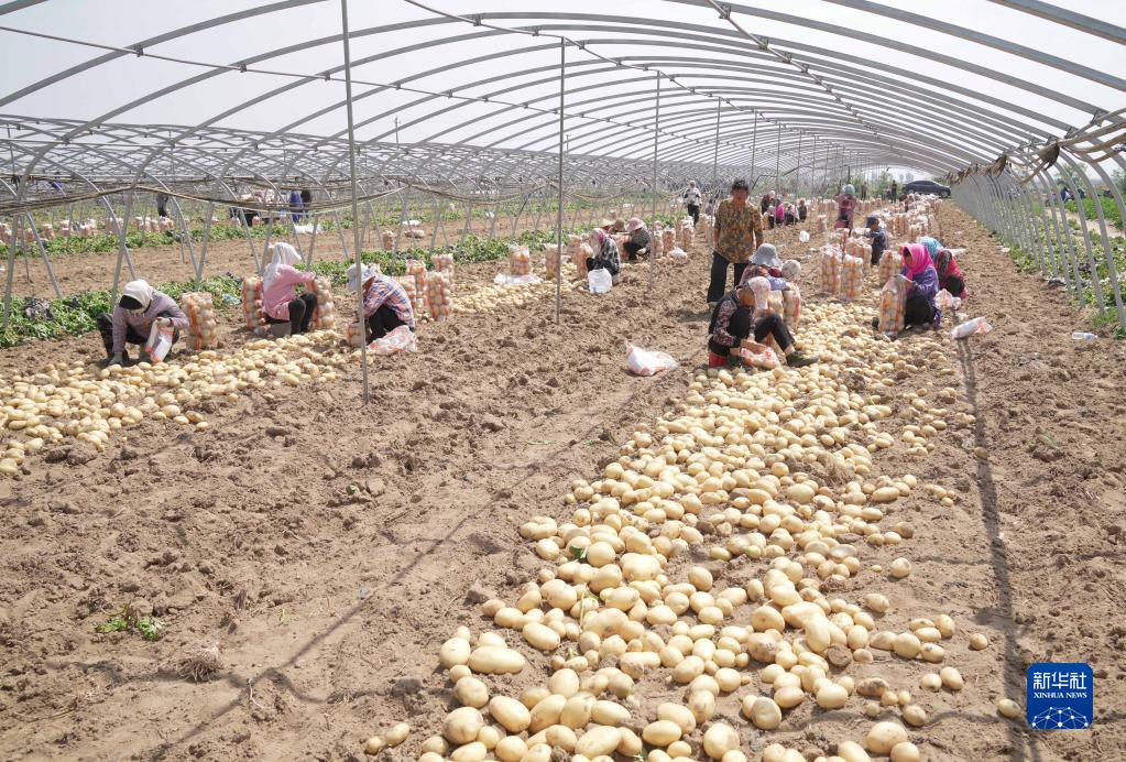 6月8日,昌黎县新集镇西新庄村农民在田间收获马铃薯。