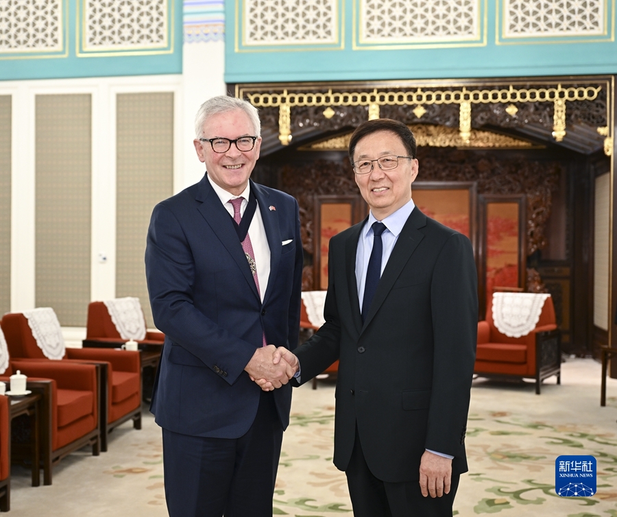 6月8日,国家副主席韩正在北京会见英国伦敦金融城市长梁佑思。新华社记者 张领 摄