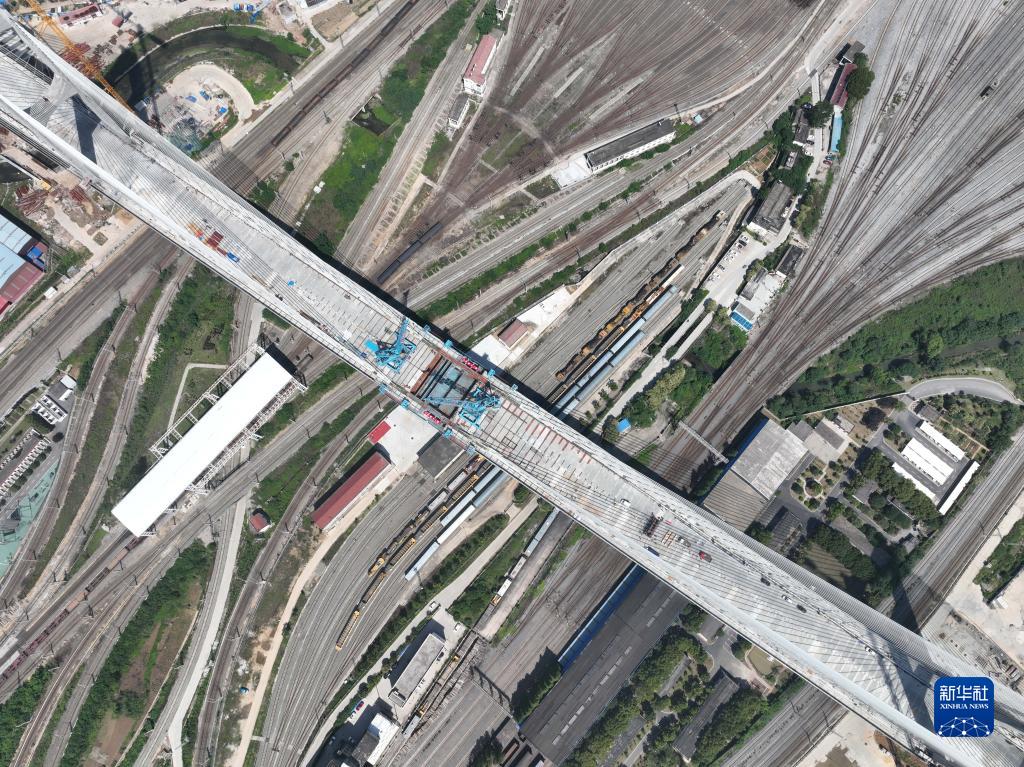这是合龙后的襄阳北编组站大桥(6月8日摄,无人机照片)。
