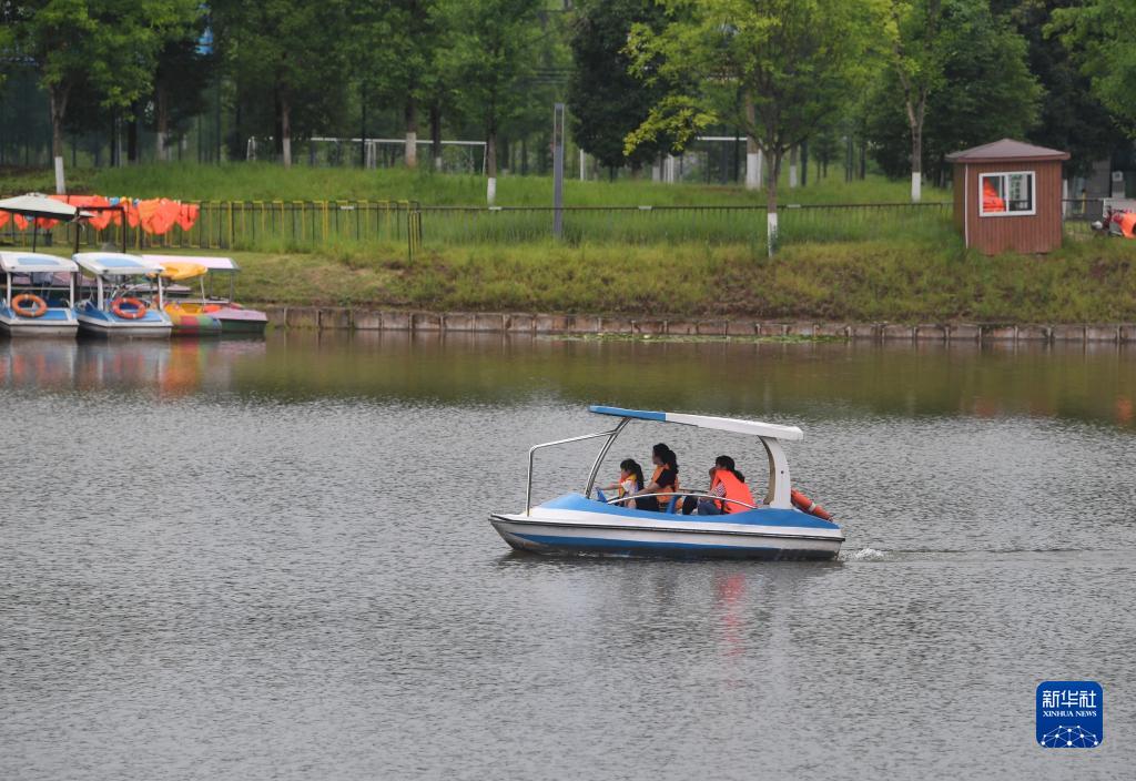 6月1日,泸州市民在渔子溪湿地公园内游玩。泸州高新区渔子溪湿地公园的“前身”是三道河、新河沟和大桥河沟,三条支流汇聚于渔子溪湖汇入长江。原流域内生态环境差,污染严重,垃圾随处可见,是典型的城郊“臭水沟”。经过治理,渔子溪湖水质得到根本性改良,部分区域指标达到Ⅰ、Ⅱ类水标准。同时,治理后的渔子溪湖减少了水土流失,降低了直排长江的泥沙含量,达到节约水资源、水土保持和修复生态的目的。“臭水沟”蝶变成为“网红打卡地”。